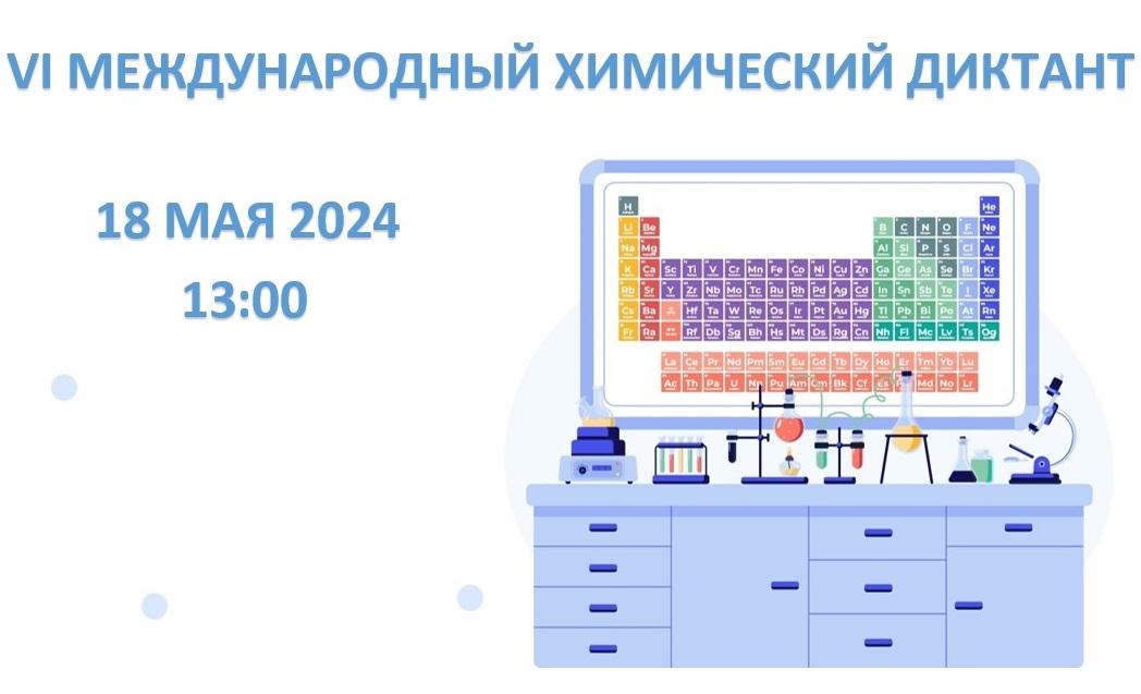Открыта регистрация на участие в VI Международном химическом диктанте. Он пройдёт 18 мая в 13:00 по местному времени в онлайн-формате на сайте химдиктант.рф и на очных площадках. Участвовать могут все желающие.
