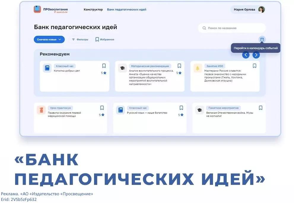 В цифровом сервисе «ПРОвоспитание в школе» опубликован «Банк педагогических идей», которым могут бесплатно воспользоваться все, кому он может быть полезен: советники по воспитанию, классные руководители, педагоги.
